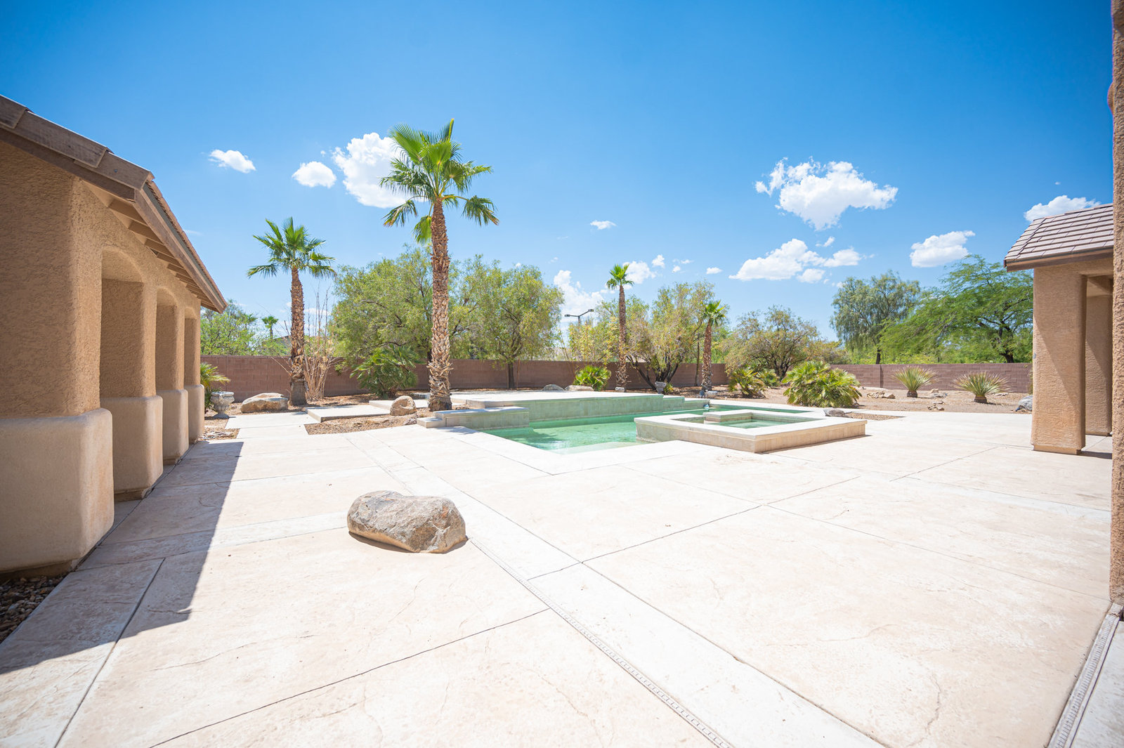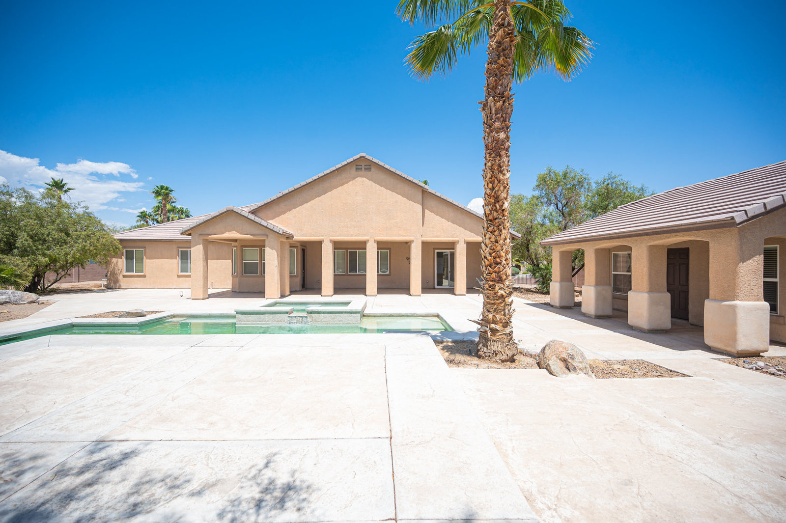 Welcome to this stunning single-story estate on just over a ½ acre lot, offering elegance and functionality. This 4 bed, 2½ bath home with a 3-car garage is a true gem with luxurious features. Step inside, be impressed by the spacious layout, abundant natural light, Travertine tile, cozy carpeted bedrooms, and built-in cabinets and shelves in the entertainment center. Escape to the backyard oasis with a pool, spa, and charming casita that offers versatility as a 1 bed, 1 bath & kitchen. Ample space for outdoor activities, with potential RV parking. Main house 2,989 ft², casita 441 ft². Located in the gated community Iron Mountain Estates, a desirable neighborhood, close to amenities. Don't miss this must-see home! Schedule a private tour now and embark on luxurious living. Act fast—your dream home awaits!
